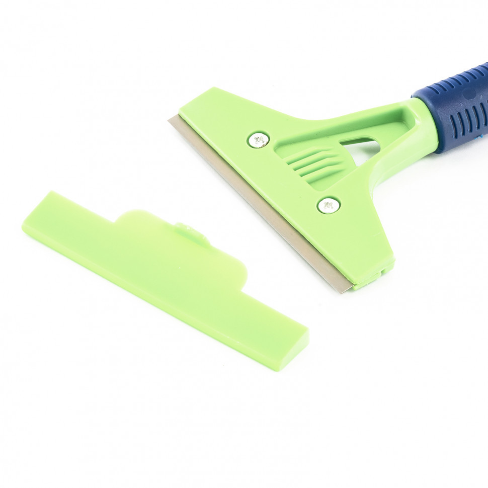 Скребок Сибртех 79529 длиной 200 мм, с лезвием шириной 100 мм, с пластиковой ручкой, — ручной инструмент для удаления старых лакокрасочных покрытий и загрязнений с керамических, стеклянных, металлических и прочих гладких поверхностей. Имеет двустороннее лезвие, острая сторона которого облегчает снятие остатков краски и лака, монтажной пены, удаление наклеек и жевательной резинки. Тупая сторона позволяет использовать скребок для удаления герметика, строительных смесей, шпаклевки и цемента. В случае износа лезвия нет необходимости приобретать новый инструмент, поскольку полотно можно заменить. Скребок пригодится во время ремонта, а также будет полезен в быту.