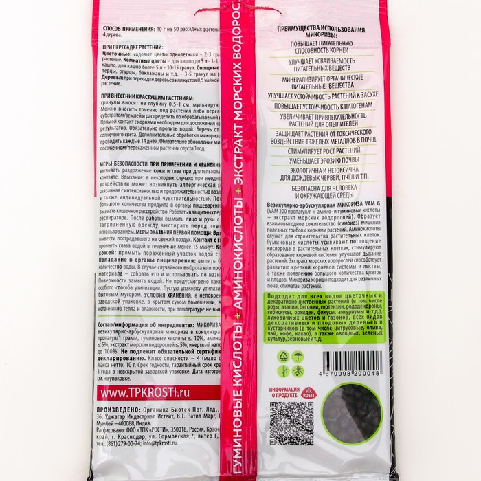 Микориза обладает мощным противомикробным и противогрибковым свойством – подавляет корневые и плодовые гнили, семенные инфекции, макроспориоз, фузариоз, фитофтороз, паршу и другие болезни растений.