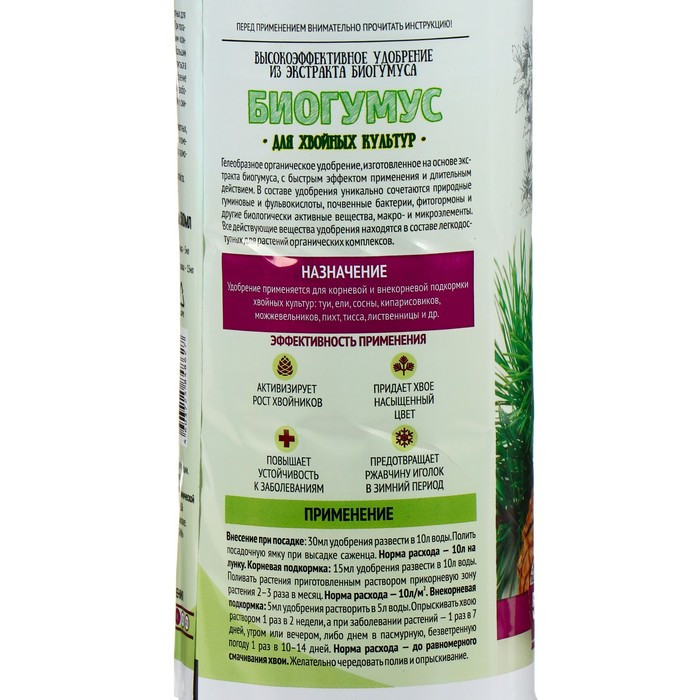 Гелеобразное органическое удобрение, изготовленное на основе экстракта биогумуса, с быстрым эффектом применения и длительным действием. В составе удобрения уникально сочетаются природные гуминовые и фульвоокислоты, почвенные бактерии, фитогормоны и другие биологически активные вещества, макро- и микроэлементы. Все действующие вещества удобрения находятся в составе легкодоступных для растений органических комплексов.