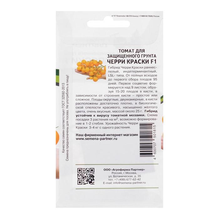 Гибрид раннеспелый, индетерминантный, LSL- типа. От всходов до начала созревания 95 дней. Первое соцветие формирует над 9-м листом, образуя около 20 и более плодов в кисти, в зависимости от строения - простое или сложное. Плоды округлые, двухкамерные, в биологической спелости насыщенно желтого цвета, без пятна у плодоножки, отличного вкуса, массой 20-25 г, с равномерной плотностью мякоти. Гибрид устойчив к вирусу томатной мозаики, фузариозу, кладоспориозу и вертициллезу. Плотность посадки 3-4 растения/м2, при формировании в 1-2 стебля. Урожайность около 3 кг с одного растения.
