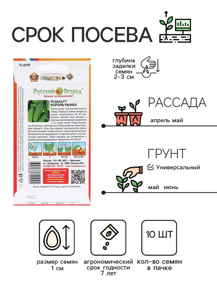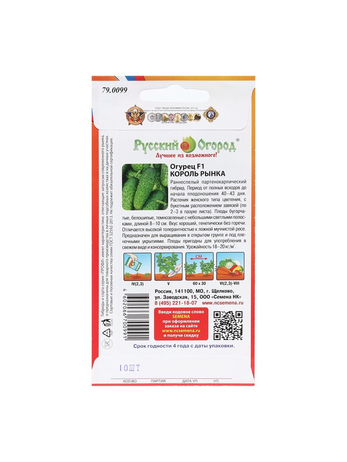 Раннеспелый партенокарпический гибрид для открытого грунта и пленочных укрытий. Растения женского типа цветения, с букетным расположением завязей (по 2-3 в пазухе листа). Плоды бугорчатые, белошипые, длиной 8-10 см, пригодны для употребления в свежем виде и консервирования. Толерантен к ложной мучнистой росе.